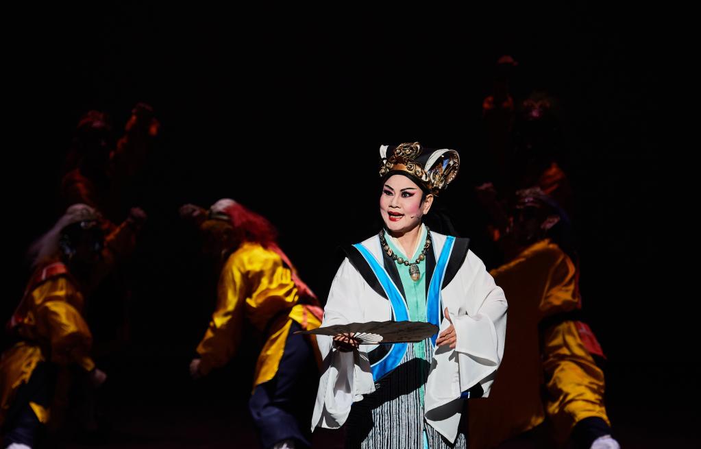 2017年11月23日,王海玲献演豫剧《观·音》。《观·音》巧妙穿插了她曾经扮演过的经典角色,是对王海玲58年豫剧表演生涯的一次回顾与致敬。新华社记者 赵颖全 摄