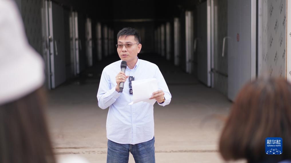 7月17日,钱建华在介绍菌菇大棚。新华社记者 黄扬 摄