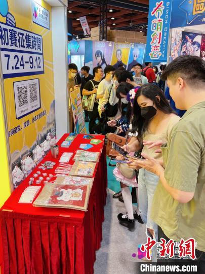 7月27日至31日,第一届海峡两岸动漫配音大赛亮相第22届台湾漫画博览会。图为漫博会上的第一届海峡两岸动漫配音大赛展区。主办方供图