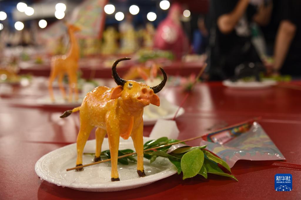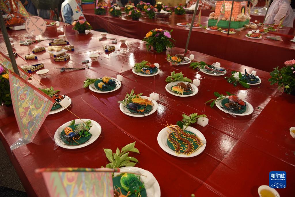 8月30日拍摄的“鸡笼中元祭”活动上的“米雕”供品。新华社记者 王承昊 摄