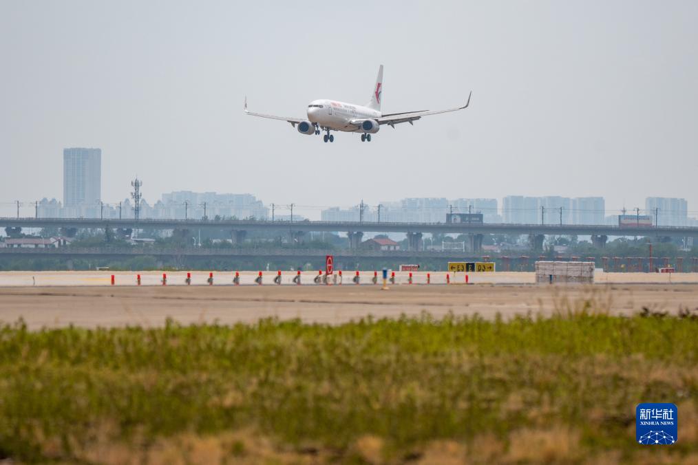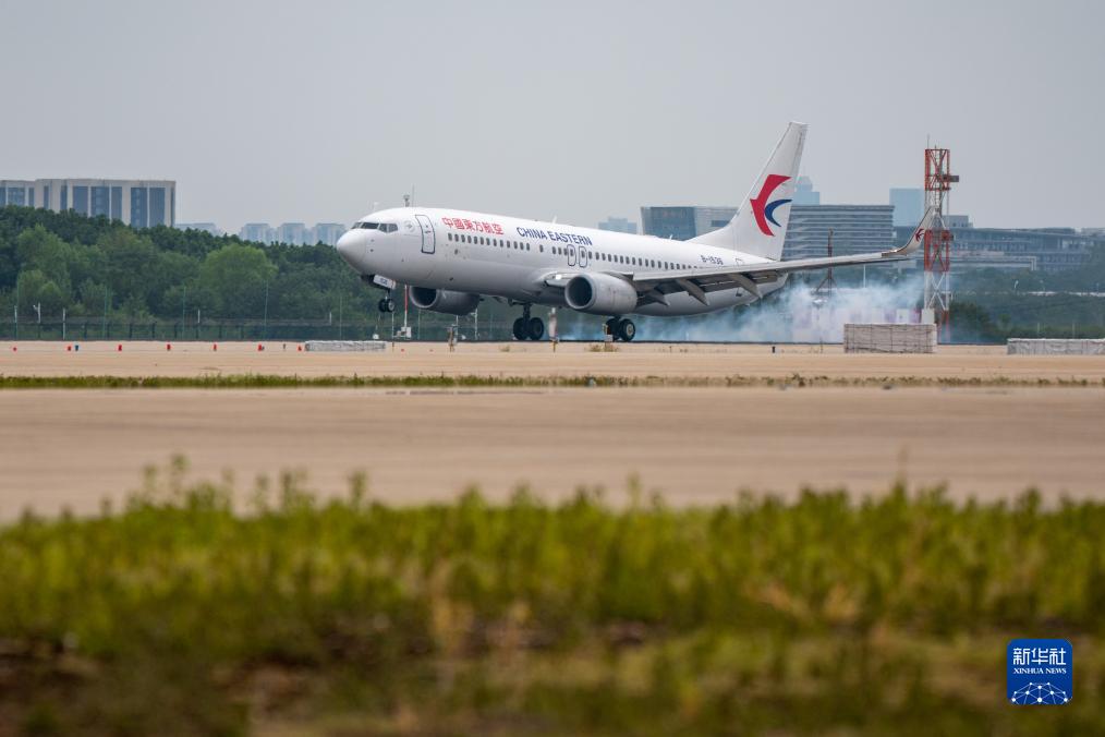 9月18日,在武汉天河国际机场,东航MU2088航班着陆。新华社发(杜子璇摄)