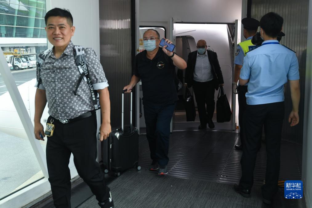 9月18日,在武汉天河国际机场,东航MU2088航班乘客出舱。新华社发(杜子璇摄)