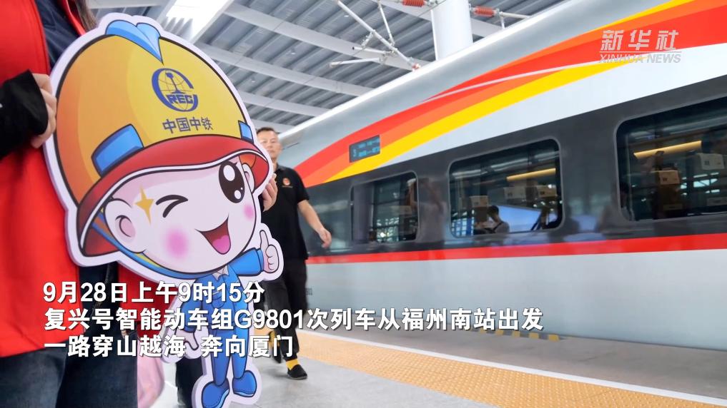 9月28日上午9时15分,复兴号智能动车组G9801次列车从福州南站出发,一路穿山越海,奔向厦门。