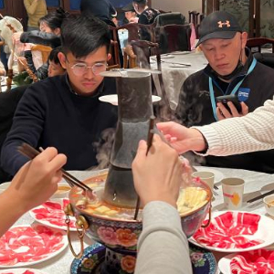 冬令营期间,北京分营的营员们品尝老北京涮羊肉。新华社记者 齐菲 摄
