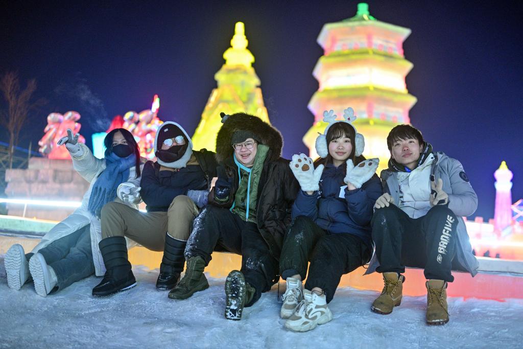 1月26日,参加全国台联第三十届台胞青年冬令营的营员在吉林长春冰雪新天地合影。 新华社记者 陈晔华 摄