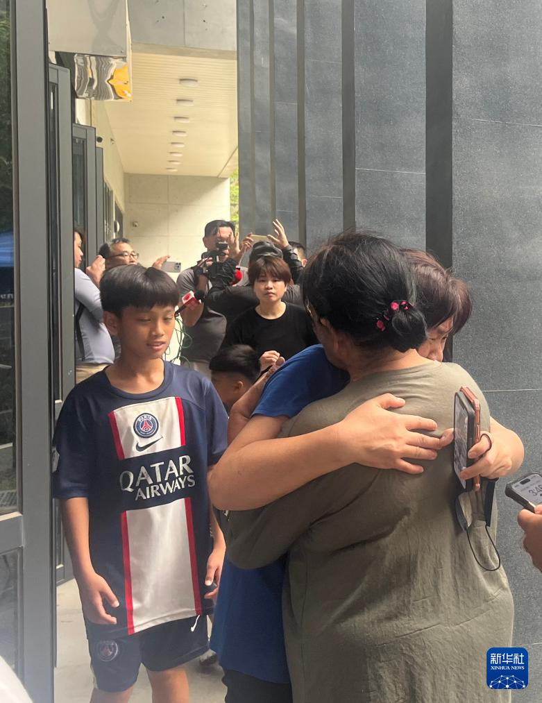 4月4日下午,脱困人员安全撤离至太鲁阁公园东西横贯公路入口附近的搜救指挥所后,与家人相拥而泣。新华社记者 赵博 摄