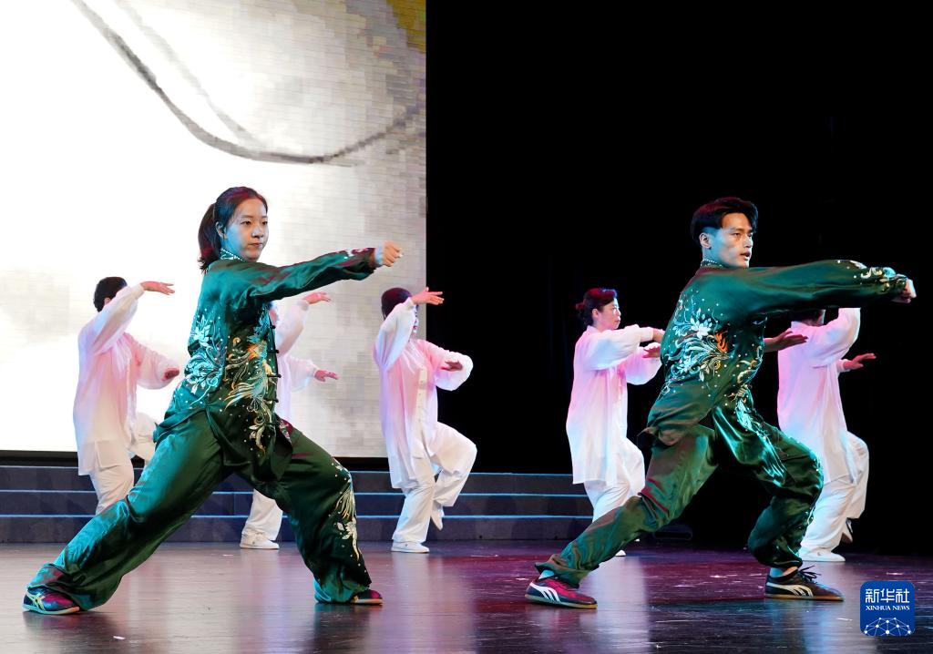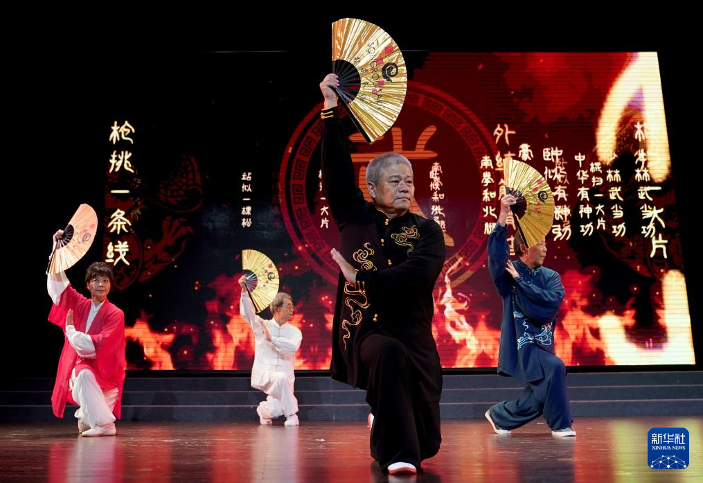 5月8日,在上海闵行区举办的“两岸同根 太极一家”文化交流活动上,台湾太极名家登台表演。新华社记者 刘颖 摄