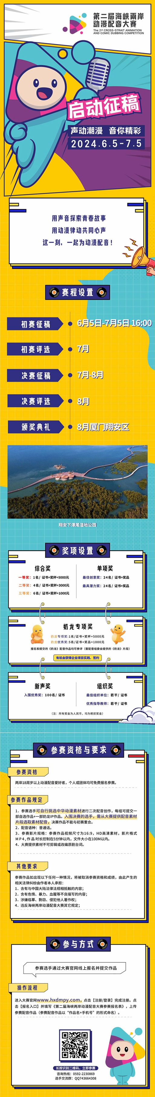 主办方介绍,即日起通过大赛网站(www.hxdmpy.com)均可免费报名参加。线上选手通过大赛官网线上报名并提交初赛、决赛作品。线下落地颁奖典礼、参访交流活动。即日起至7月5日为初赛征集阶段,7月-8月为决赛阶段,预计8月中旬将在厦门翔安区举办颁奖仪式。(完)