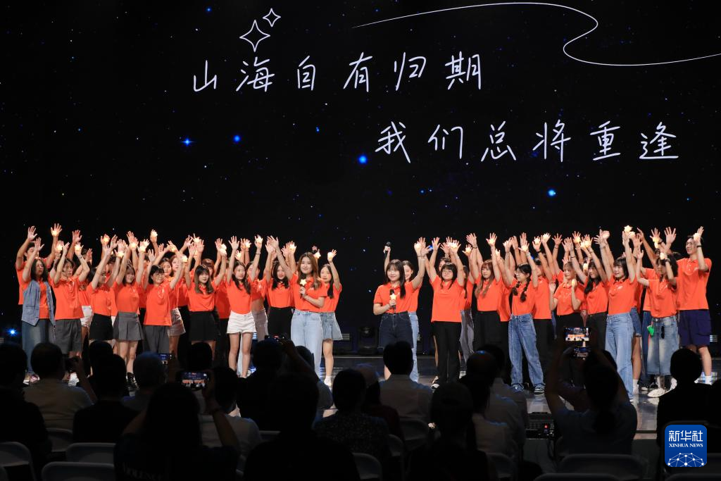 这是8月9日在湖南长沙拍摄的第七届台湾高校新闻传播专业学生暑期来湘“爱·在芒果”实习交流活动结业典礼现场。新华社发(尹赛楠摄)