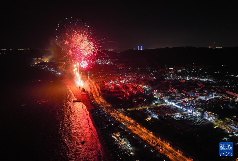 厦金隔海同步燃放焰火持续30分钟。厦门会场燃放高低空焰火4.36万发;金门会场围绕“春晓”“家安”“共融”“烟清”四大篇章,燃放1779发高空焰火和2814发中低空焰火,以璀璨焰火互贺新春,向两岸人民传递美好祝福。