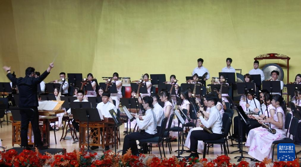 8月9日,来自台湾的青少年在太原参加“唱响两岸 情满三晋”2025晋台沪青少年民乐交流音乐会。新华社发(白志斌 摄)