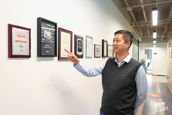 魏文锋介绍“老爸评测”所获得的奖项。胡亦赟/摄