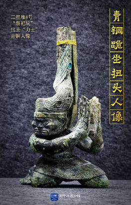 罕见青铜人像头发“冲天而起” 双手比例夸张