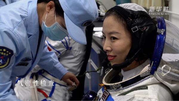 “青春与星空对话”中西部青少年与载人航天面对面主题活动的青少年代表在“神十三”发射之际,到酒泉卫星发射中心与航天员面对面交流,送他们出征。
