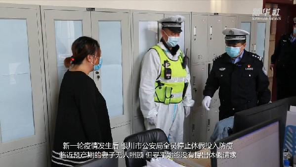 宁夏银川市公安局交警支队金凤区二大队辅警妥平自10月新一轮疫情防控以来,一直在封控点一线坚持工作没有回家。