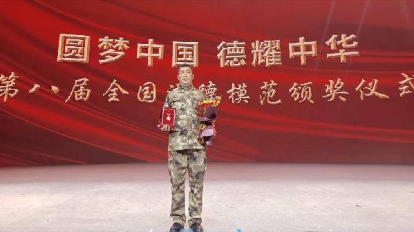 11月5日,第八届全国道德模范座谈会和颁奖仪式在北京举行。一位来自新疆生产建设兵团,身着迷彩服,又黑又壮的汉子——胡拥军,获得了“诚实守信模范”荣誉称号。