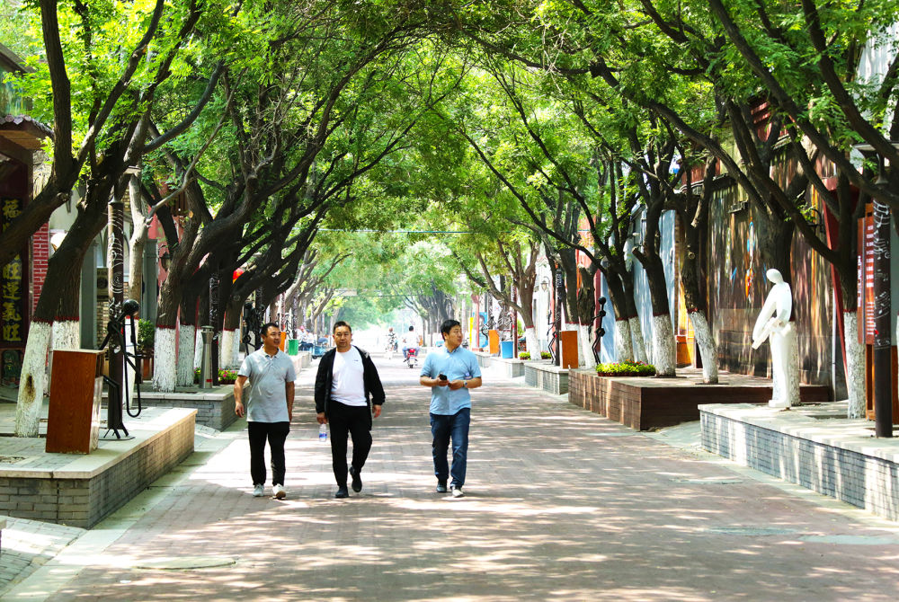 周窝音乐小镇,前身是河北省衡水市武强县周窝村。大家利用住宅“一门一景、一户一品”规划设计,装修改造植入音乐、年画、休闲养生等元素,打造国际级音乐小镇。图为周窝音乐小镇街道 。新华网发(刘广生 摄于2021年6月8日)