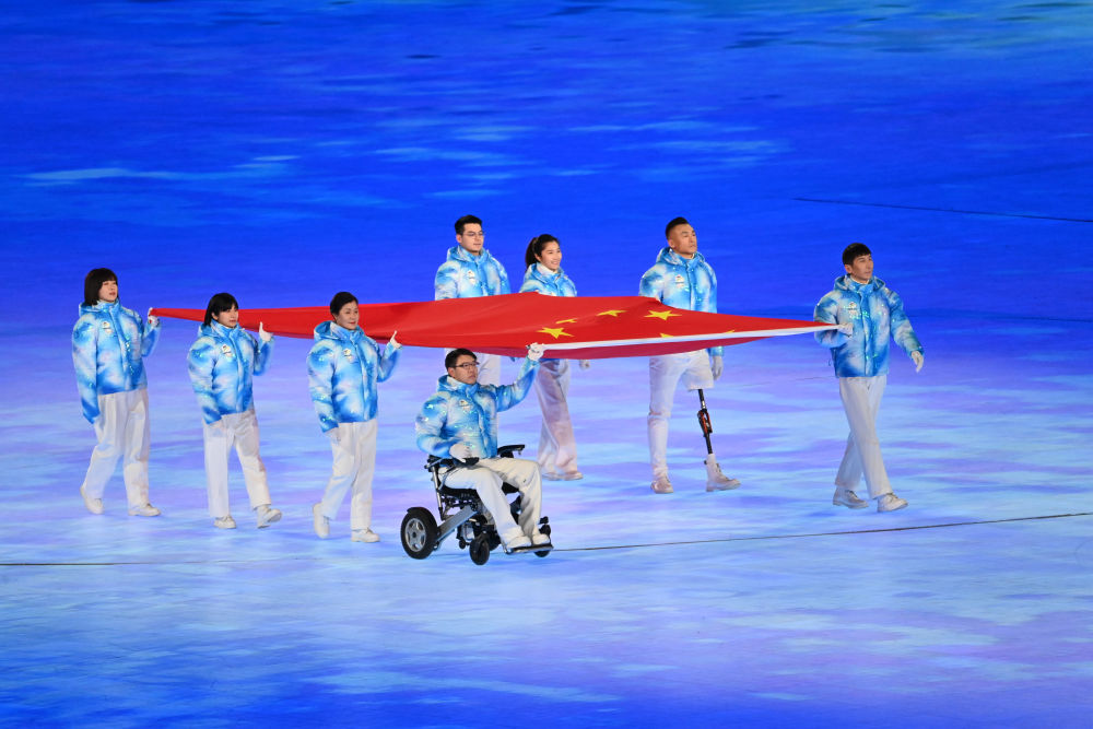3月4日晚,北京2022年冬残奥会开幕式在北京国家体育场举行。这是中华人民共和国国旗入场。新华社记者任超摄