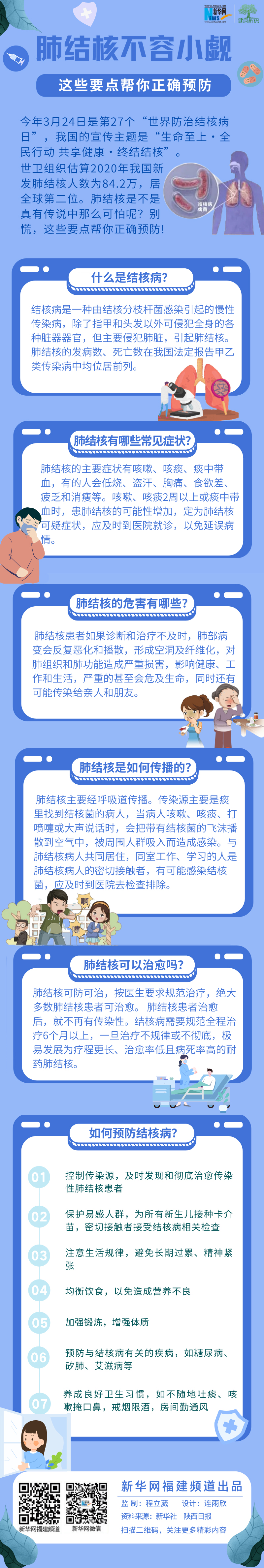 今年3月24日是第27个“世界防治结核病日”,我国的宣传主题是“生命至上·全民行动 共享健康·终结结核”。世卫组织估算2020年我国新发肺结核人数为84.2万,居全球第二位。肺结核是不是真有传说中那么可怕呢?别慌,这些要点帮你正确预防!