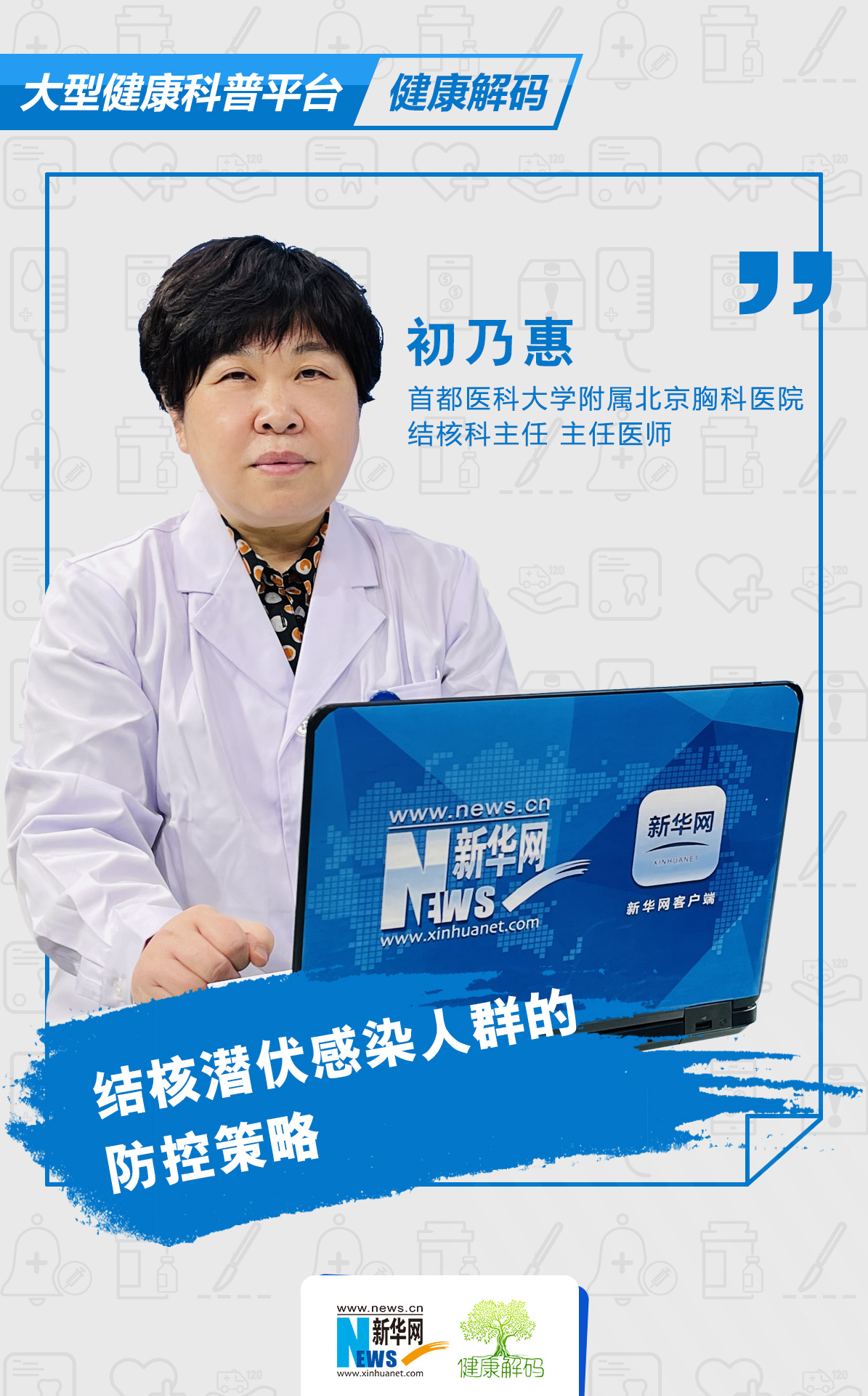初乃惠:结核潜伏感染是没有任何症状的,患者自始至终不知情。甚至很多人即使曾经患了肺结核,但直到疾病自愈若干年之后可能因为体检或其他原因拍摄胸片的时候,医生依据胸片上的陈旧性结核病灶告知,才知道有结核既往病史。据估计全球每10 个人中即有3人为 LTBI, 终其一生约有5%到10%会发病,大部分人在感染后5年内发病。当我们身体免疫力下降的时候,我们就都会处于高危状态;尤其是与肺结核患者密切接触的成人和儿童;糖尿病人、酒精依赖者、吸烟成瘾者、HIV感染人群、低体重者、肿瘤开始接受化疗的患者、接受透析治疗的患者、准备接受器官或血液移植的患者、以及尘肺患者;对于羁押人员、医务人员、来自结核病高负担国家的移民、无家可归者、以及吸毒人员等等;这些人群都属于高危人群。