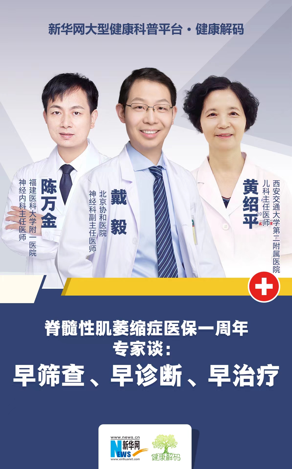 脊髓性肌萎缩症(SMA)是一种罕见的基因缺陷型疾病,会造成患者坐、站、走、跑、跳等运动功能的下降,在婴儿、儿童甚至成年阶段均有发病的可能,应当引起广泛关注。脊髓性肌萎缩症是由什么引起的?主要的症状与危害有哪些?对于SMA的诊疗有什么建议?本期节目我们邀请到了北京协和医院神经科副主任医师戴毅、福建医科大学附属第一医院主任医师陈万金和西安交通大学第二附属医院儿科主任医师黄绍平三位教授,来与我们一起聊聊有关神经方面疾病的问题。