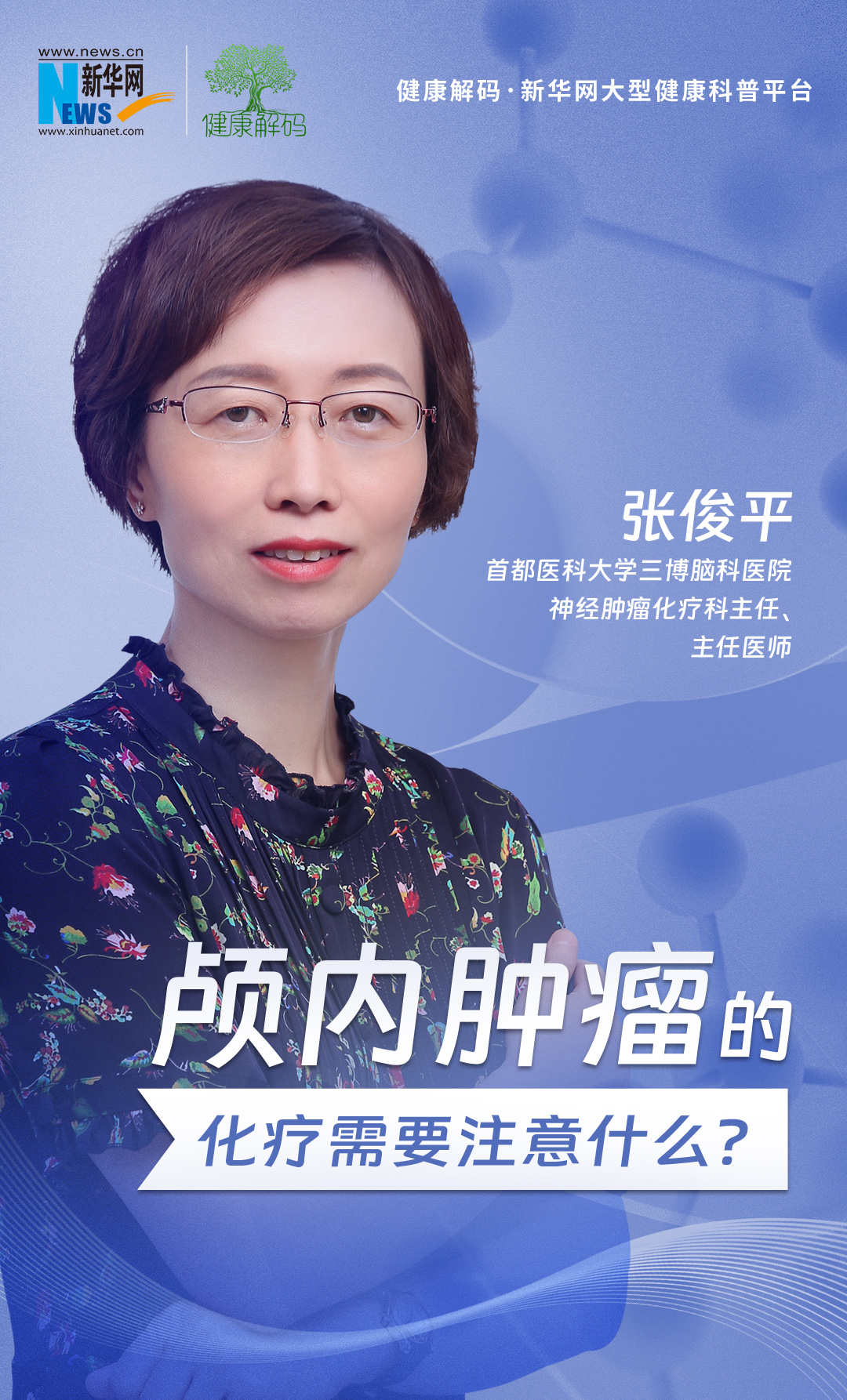 本期我们邀请了首都医科大学三博脑科医院神经肿瘤化疗科主任、主任医师, 中国抗癌协会神经肿瘤专业委员会副主任委员张俊平讲解颅内肿瘤(脑肿瘤)的化疗需要注意什么。