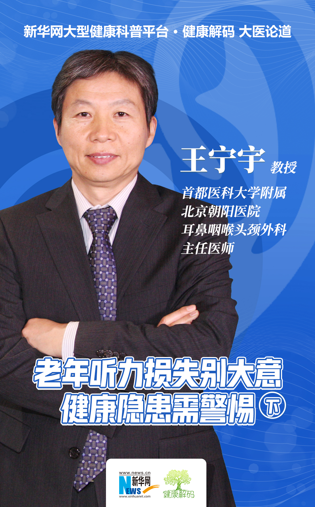 王宁宇:关于怎么样预防,怎么样延缓,第一个忠告实际上是老生常谈,我们临床医生经常会跟患者说一定要调理好自己的生活习惯,要坚持锻炼,要膳食平衡,特别是要保证足够的睡眠,这些看似是我们每个人每天都在做的事情,但是它对我们的健康起到的作用不是一片药,一个手术,一个助听器所能带来的,它给我们带来是根本性的改变。所以说一定要运动起来,要保持好膳食,特别是要休息的好,保持很好的心情,这是治疗所有疾病的最根本的,没有成本的这样的一个建议。