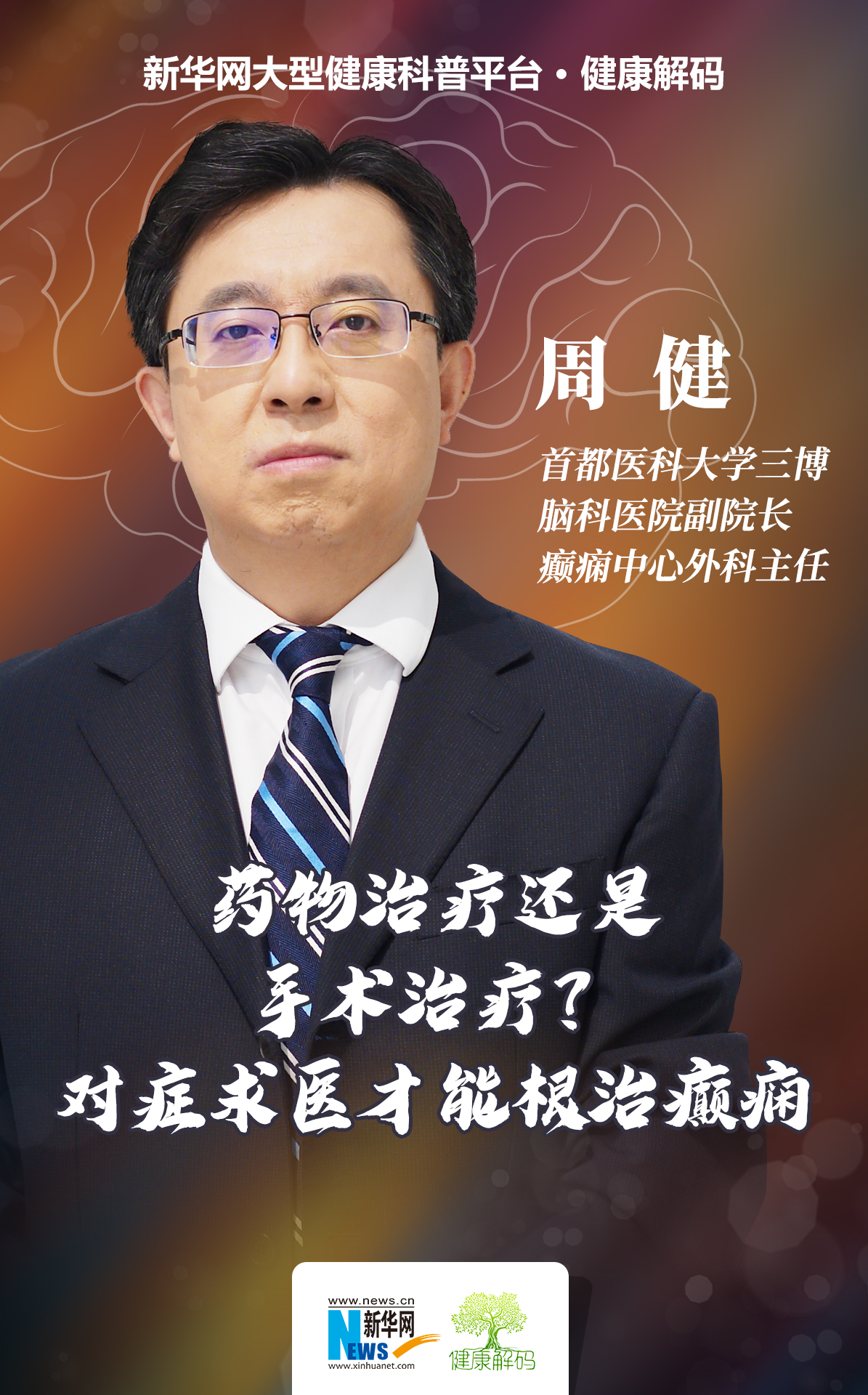 首都医科大学三博脑科医院副院长、癫痫中心外科主任、中国抗癫痫协会常务理事周健做客新华网演播间