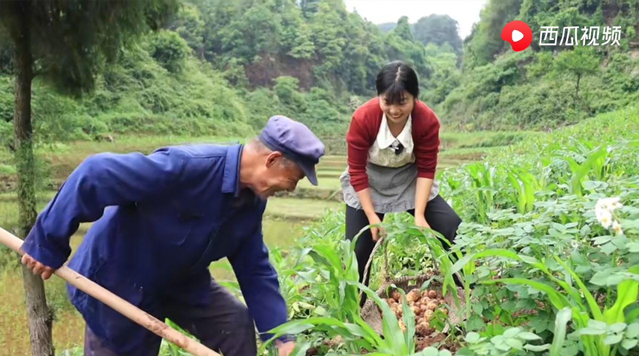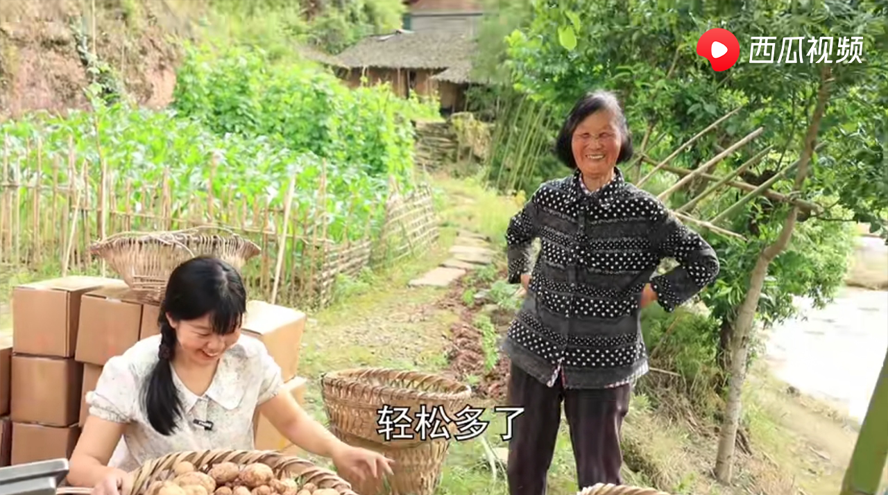 “我看到城里的市场上有很多老年人在卖菜,觉得他们都很不容易的,因为大家都住得很远,背二三百斤的菜进城太辛苦了,我就想收了村里老人的菜,背到城里一起卖,让他们轻松一点。”在燕麦的视频里,何嬢嬢家的稻米、赖婆婆家的野菜都是她背篓里的常客,在燕麦的帮助下,老人们不用下山就能卖掉地里的菜,让他们直呼“轻松多了”。
