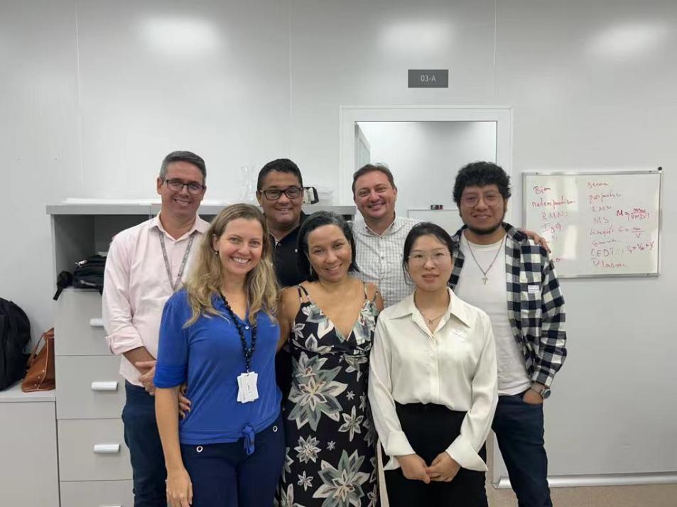 刘博涵和同事秦慧莹(拉美区产品经理)与巴西合作伙伴Fiocruz合影