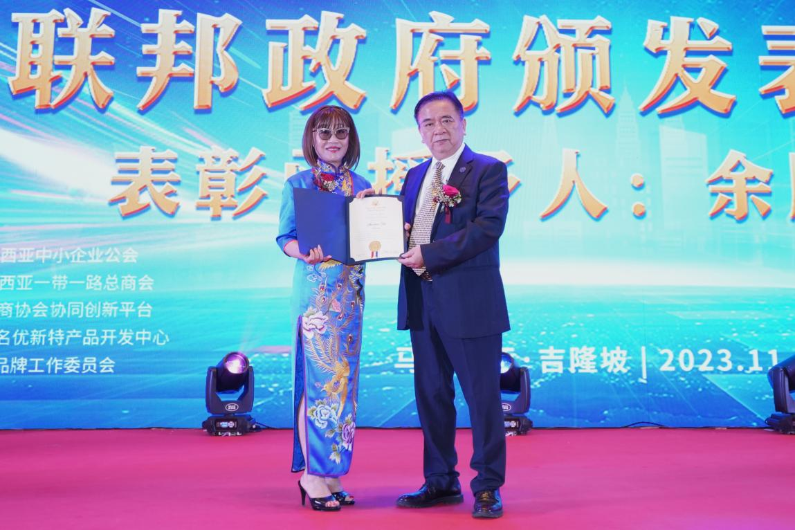 Mary Su市长代表美国联邦政府众议院为余顺标主席颁发表彰证书。