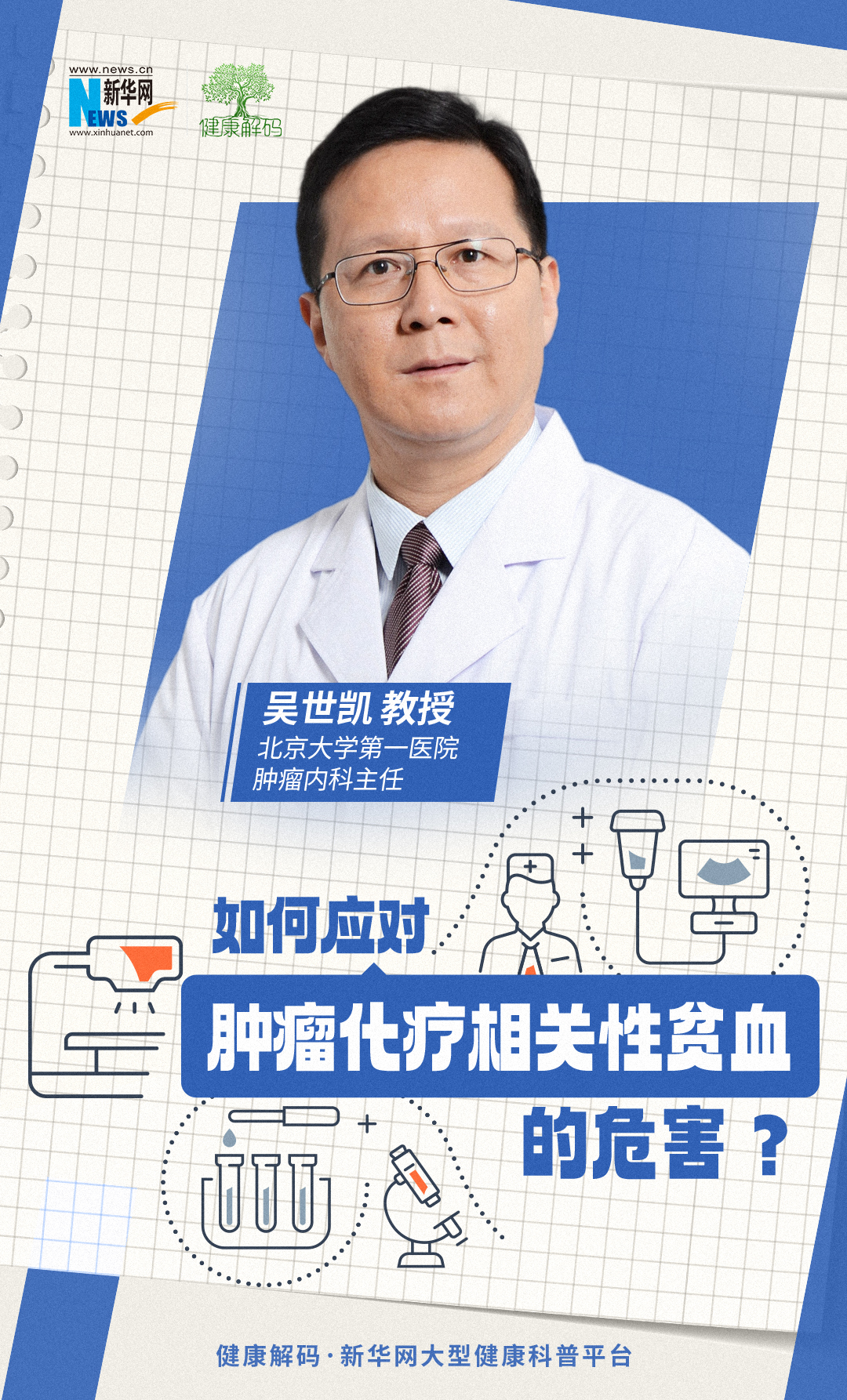 吴世凯:在肿瘤的综合治疗当中,化疗占有非常重要的地位,但由于化疗对造血细胞存在不可避免的杀伤。化疗导致的贫血,据研究资料显示大概高达78.8%,也就百分之七八十的病人都会有化疗导致的贫血。白细胞、血小板的下降很容易表现出很多的症状,但是这个红细胞因为它生存期比较长,120天,所以它的杀伤是渐渐出现的,常常被大家忽视。贫血能带来很多身体的伤害,要引起大家的重视。