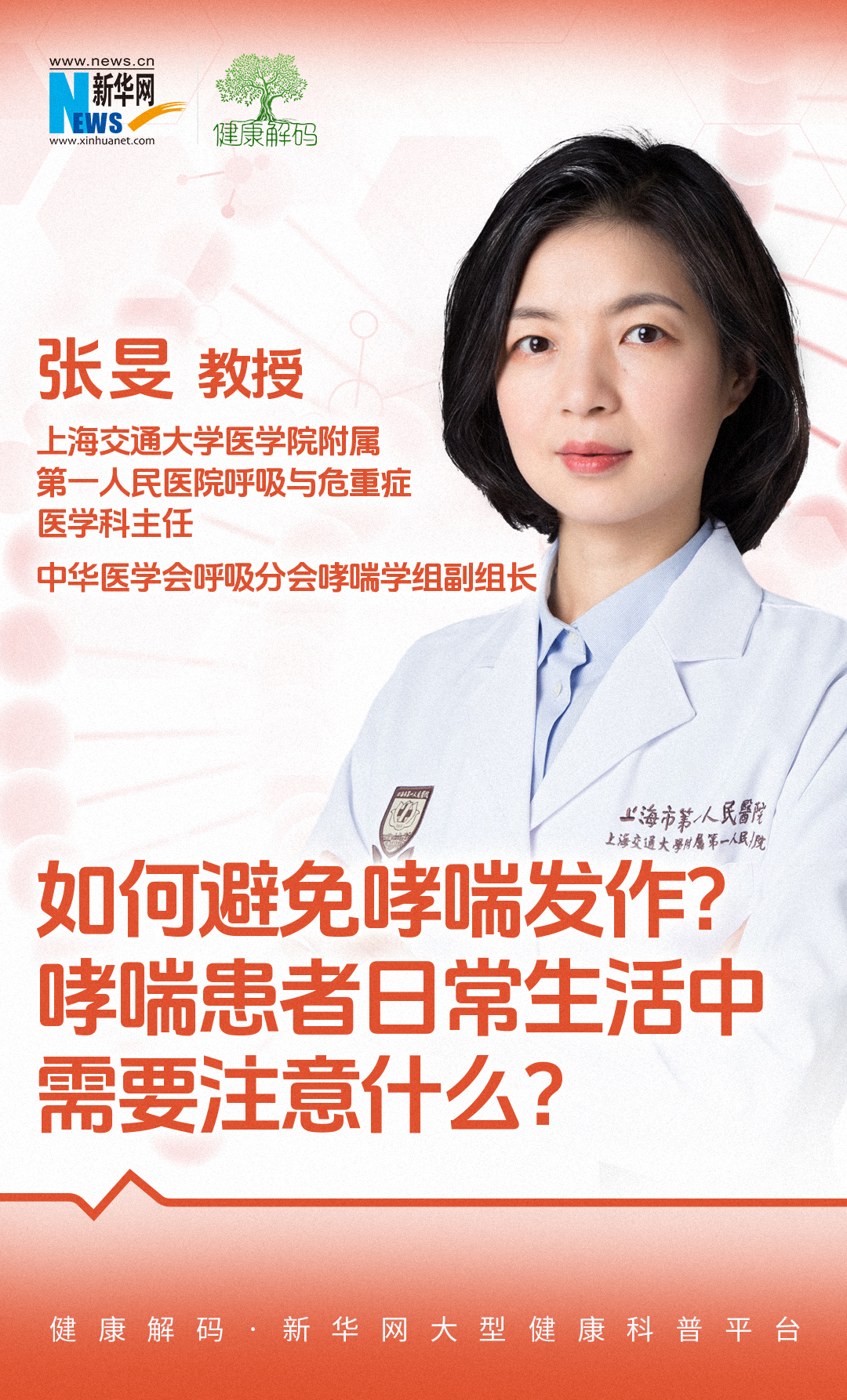 张旻:如果明确是重度的哮喘患者,第一,患者要做自己的第一责任人,一定要规律的使用药物,平时做好预防措施。同时日常注意监测自己的行为,多注意一下自己的症状,定期到医院看诊,让急性发作的可能性减到尽量低。