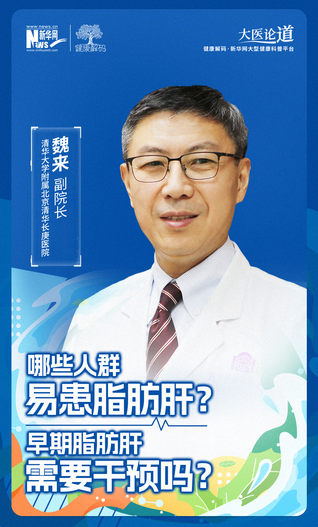 肝脏是人体重要的物质代谢中心,集合糖、蛋白质和脂肪三大物质代谢于一体。在正常肝脏脂肪含量占其总重量的5%,超过5%后就可以诊断为脂肪肝了。本集我们邀请了清华大学附属北京清华长庚医院副院长魏来教授,分享“哪些人群易患脂肪肝?早期脂肪肝需要干预吗?”等话题。