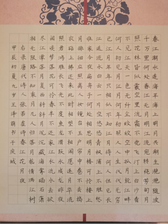图为来自甘肃的王泽萌创作的书法作品《春江花月夜》。