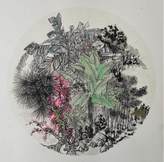 图为来自甘肃的刘芊羽创作的绘画作品《山居》。