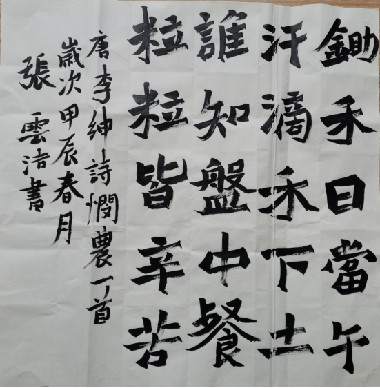 图为来自甘肃的张云洁创作的书法作品《悯农》。