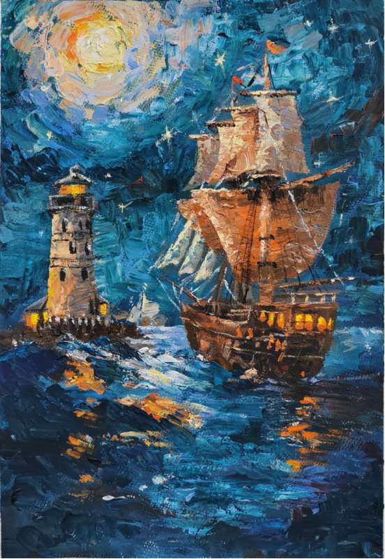 图为来自甘肃的魏子贤创作的绘画作品《梦想远航》。