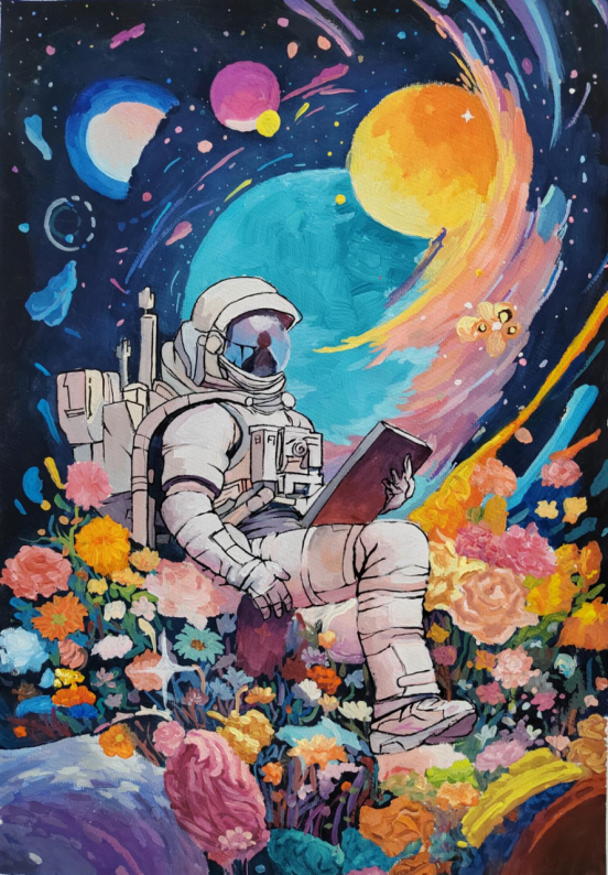 图为来自甘肃的罗文菁创作的绘画作品《畅想未来》。