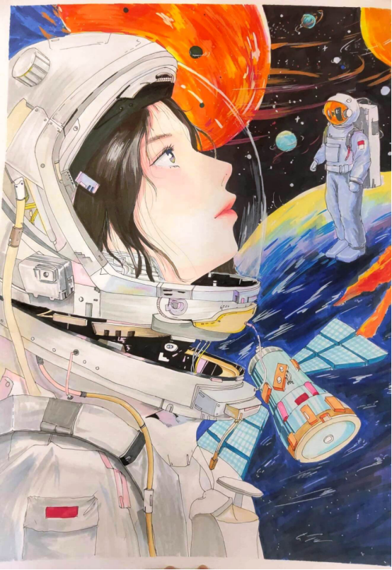 图为来自甘肃的冷灵侠创作的绘画作品《我的太空梦》。