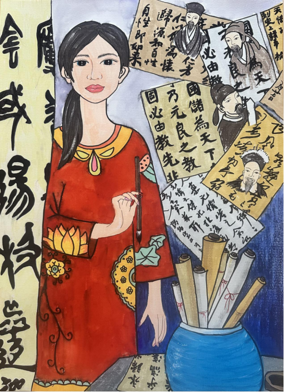 图为来自甘肃的慕芝晓创作的绘画作品《书法家之梦》。