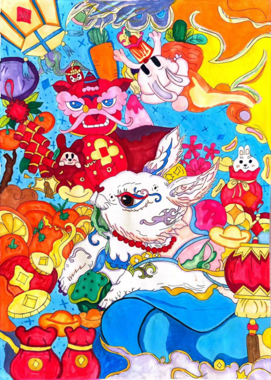 图为来自甘肃的高梓桐创作的绘画作品《兔年大吉》。