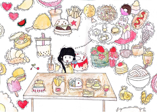 图为来自甘肃的王炫洁创作的绘画作品《我的梦想——美食家》。