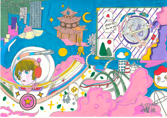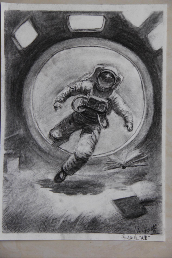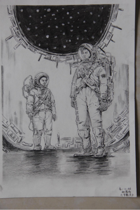 图为来自陕西的姚馨雨创作的绘画作品《宇航员》。