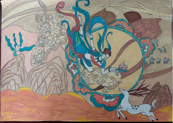 图为来自甘肃的赵艳艳创作的绘画作品《丝路神话》。