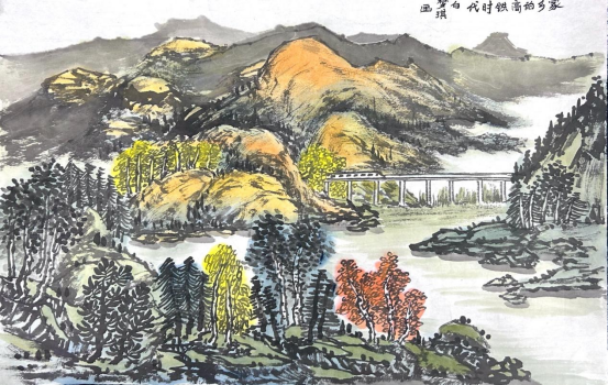 图为来自甘肃的白梦琪创作的绘画作品《家乡的高铁时代》。