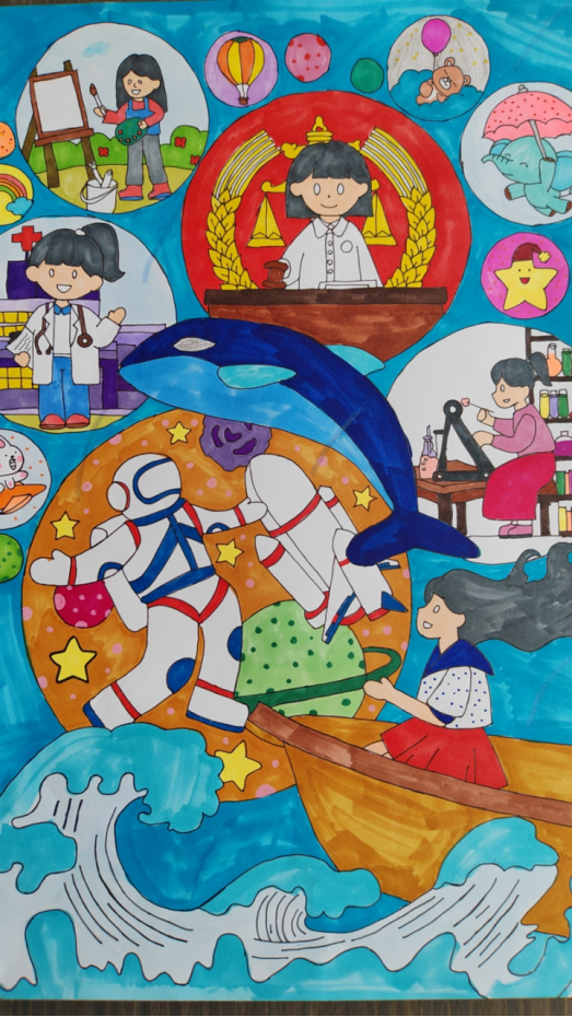 图为来自云南的杨诗钰创作的绘画作品《梦想联动》。