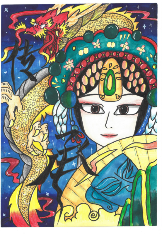 图为来自甘肃的鲁炫琳创作的绘画作品《国粹》。