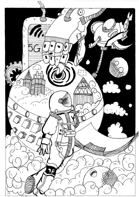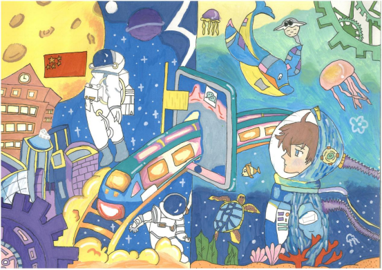 图为来自云南的尹馨媛创作的绘画作品《科技和航空》。