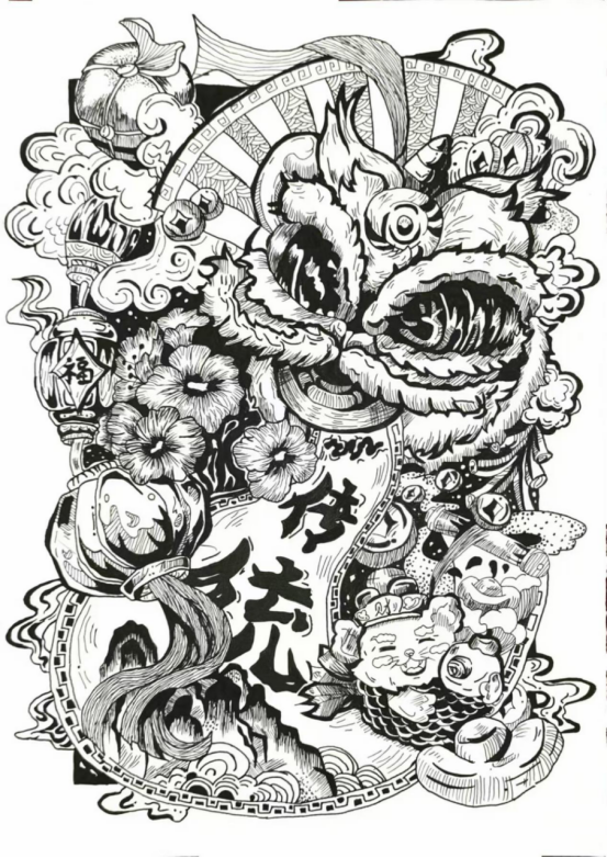 图为来自云南的严思雨创作的绘画作品《醒狮》。